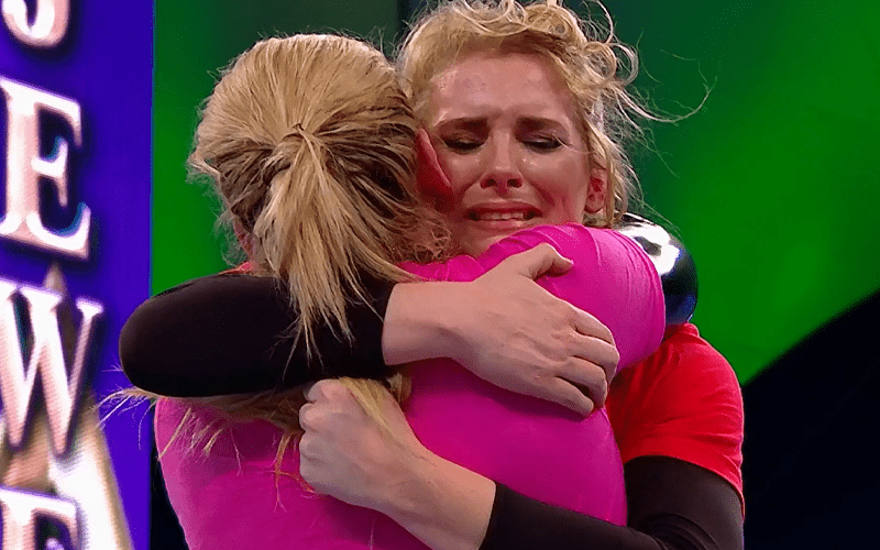 Natalya had a ton of fireworks on the stage and in the sky even before the match started and she was starting to cry. Lacey Evans didn’t receive as much pyro, but she did get a little firework display on the stage.