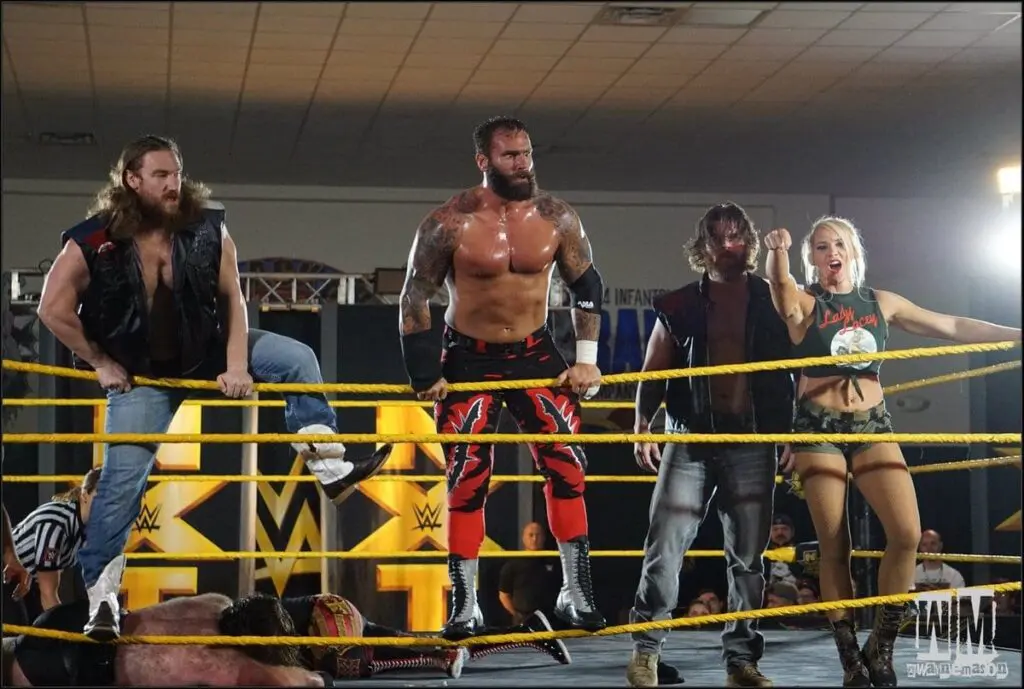 During Saturday’s NXT Live Event in Cocoa, Florida, a new stable came out and attacked Sanity. The group was made up of Wesley Blake, Chad Lail (Gunner) Steve Cutler and Lacey Evans.