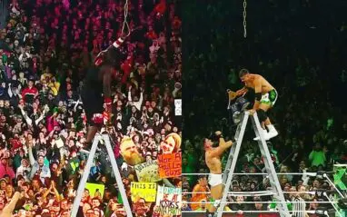 The match turned out to be exactly as it was expected, chaotic, physically tormenting, and death-defining moments off the ladder from each individual in an attempt to inflict maximum damage to the entire field and secure both sets of the WWE tag team championships hanging separately above the ring.