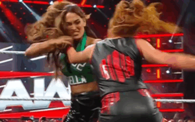 Nikki Bella was back to get her revenge on Becky Lynch for that sneak attack a few weeks ago. The segment ended with Becky eating a Rack Attack from Bella to make a statement.