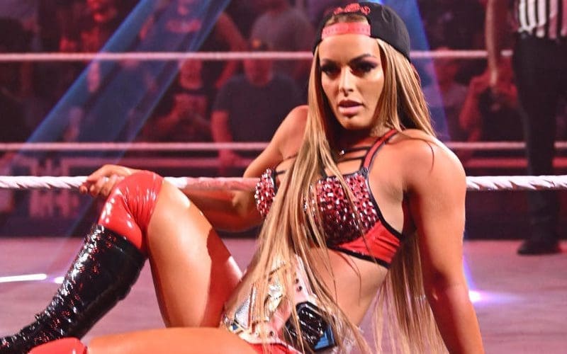 As seen on this week’s episode of NXT television, Mandy Rose defended her NXT Women’s Championship against Alba Fyre in a Last Woman Standing match. What’s interesting to note is that Rose’s gear was a direct tribute to Nikki Bella, something that fans didn’t fail to notice.