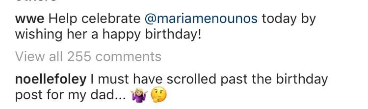 Noelle Foley seems a little upset that WWE didn’t wish her father a happy birthday, at least on the company’s Instagram account.