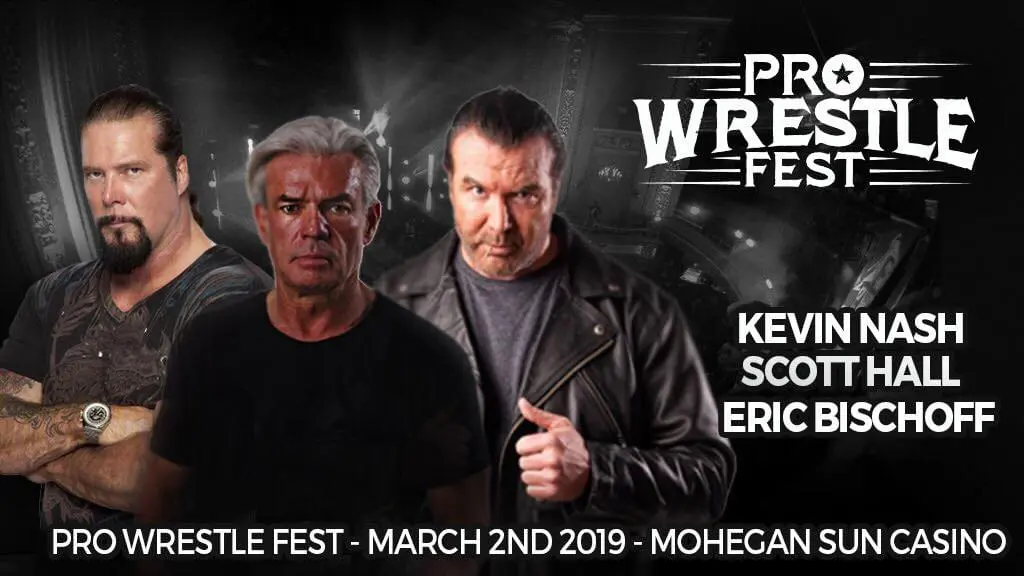 Pro Wrestle Fest made the announcement today on Facebook offering for the first time ever something very unique. So far, Eric Bischoff, Kevin Nash, and Scott Hall are announced for the show which is hinting towards an nWo reunion. The event is taking place March 2nd at the Mohegan Sun in Connecticut. Pro Wrestle Fest will be announcing a new member weekly. Tickets go on sale October 1st.