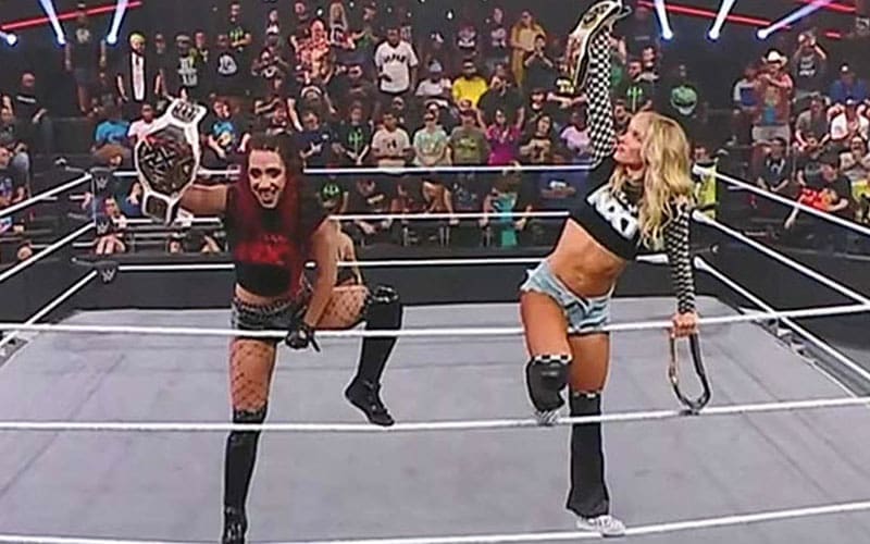 After that, Sol Ruca and Kelani Jordan fought on, and Jordan nailed a top rope Spanish Fly, but Ruca her knees up and hit the Soul Snatcher. Then Jacy Jayne jumped in to steal the pin to win the match.