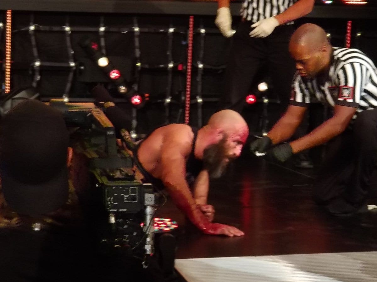* Ciampa is out now. Johnny Gargano comes out and they do a brawl angle. Gargano throws Ciampa into the entrance tron and bloodied him. Gargano licked his hand and locked Ciampa in the Gargano Escape. Staff they had to mop the blood of Ciampa off the floor it was so much. Ciampa got up and gave the crowd the double bird.
