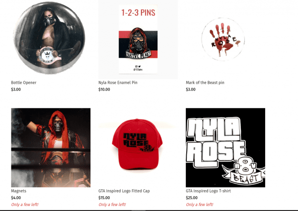 Nyla Rose has several items available from a poster to a rally towel. She also has a key ring bottle opener featuring herself in a very revealing photo. You can check those images out below.