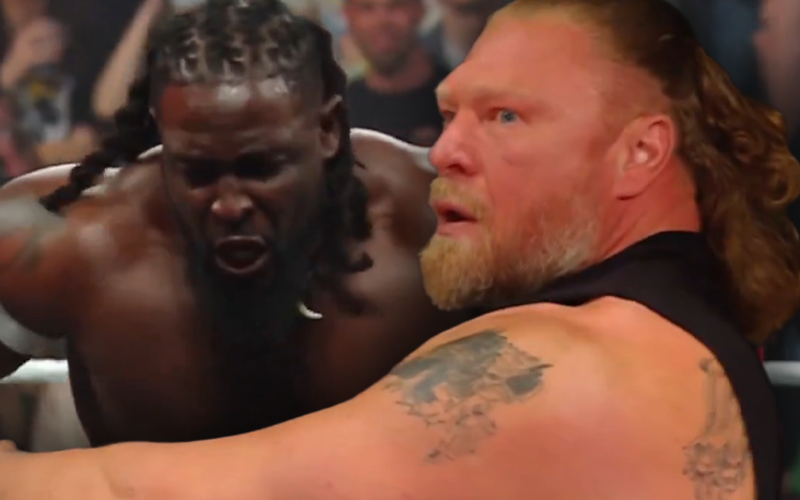 Since he was punked out by Oba Femi, Brock Lesnar can’t be happy. The Beast Incarnate was in Boston to carry on their WrestleMania story.