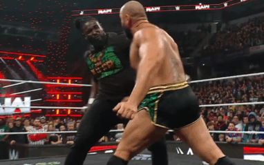 Rusev hopped off the table and got in the ring to confront Oba Femi. Then the two started trading haymakers. Oba Femi ate a Machka Kick or two and then Oba slammed Miro down before clotheslining him out of the ring.