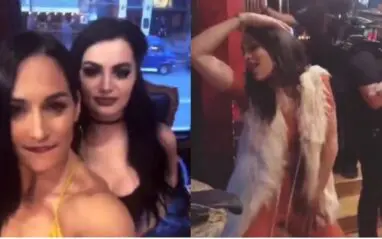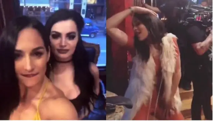 The Bella Twins and Paige played some billiards and it looks like they drank plenty of wine too. As you can see from their Instagram stories, they were obviously being filmed by more than just a cell phone because a camera crew was in the house as well.