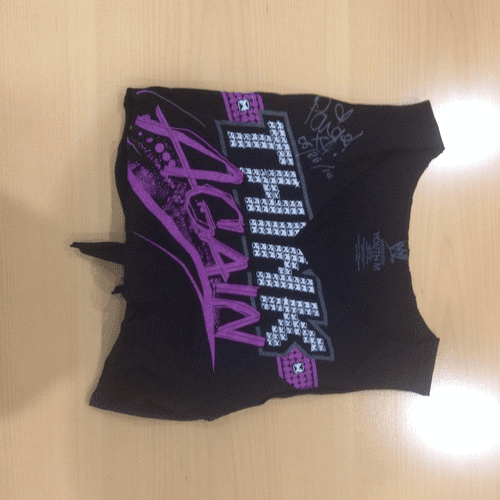 The shirt was personally autographed by WWE Divas Champion Paige on May 26th, 2014 at the Thompson-Boling Arena in Knoxville, TN. The t-shirt was recently auctioned off at auction.wwe.com. The bidding closed with a winning bid of $6,010.00.