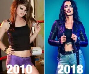 Paige signed with WWE in 2011, so the photo from 8-years-ago was taken a little bit before she signed on to report to Florida Championship Wrestling to start as a Superstar. But she certainly changed a lot since 2010. She recently shared the photo below on her Instagram story which is a side-by-side comparison of her then and now.