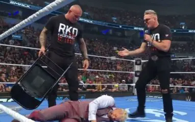 Just as the fight broke down, McAfee appeared from behind and delivered a low blow to Rhodes, officially revealing himself as Orton’s mystery ally. With Rhodes stunned, Orton grabbed a steel chair and launched a brutal attack, striking Rhodes multiple times while McAfee stood alongside him.