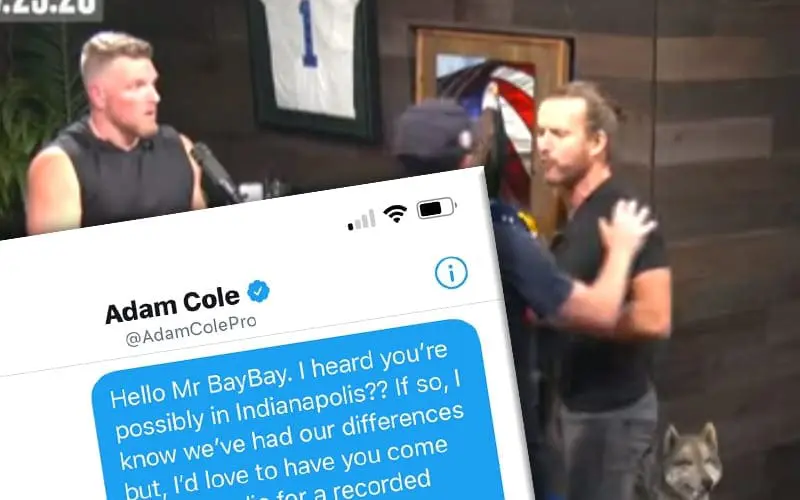 Adam Cole blew up on Pat McAfee during his radio show today and the entire thing was captured on video. The jury is still out on whether this was a work or scripted, but McAfee has some new evidence to show how the appearance allegedly started.