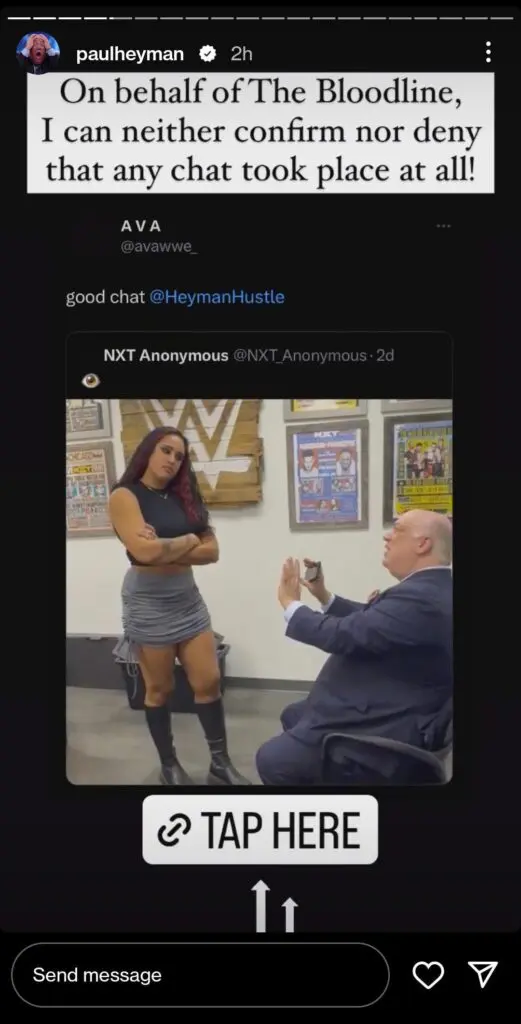 Naturally, fans started wondering whether Ava would join The Bloodline. Paul Heyman took to his Instagram stories and made it clear he refused to confirm any discussion he had with, Ava.