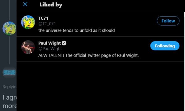 This fan seems to have the right idea about the situation, because Paul Wight smashed the like button. He didn’t say it himself, but it is pretty clear by Wight liking this response that he simply wanted more from WWE, and money wasn’t the only thing.