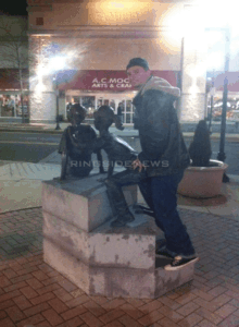As you can clearly see in this photo, Ellsworth is appearing to mount a statue of a little girl. This was probably done in total fun and for the amusement of those watching him snap the picture. But in light of these recent allegations, this photo did not age well at all.
