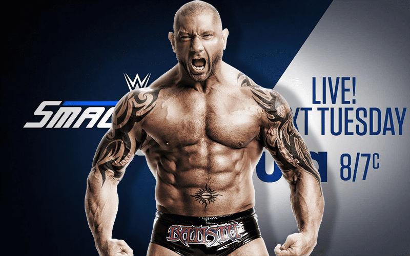 It doesn’t appear that Batista will be in action when the Evolution faction reunites at the SmackDown 1000th episode next week. However, Mike Johnson of PWInsider mentioned in his latest Q&A that it’s very possible that they actually set up an angle for Batista to wrestle somewhere down the line.