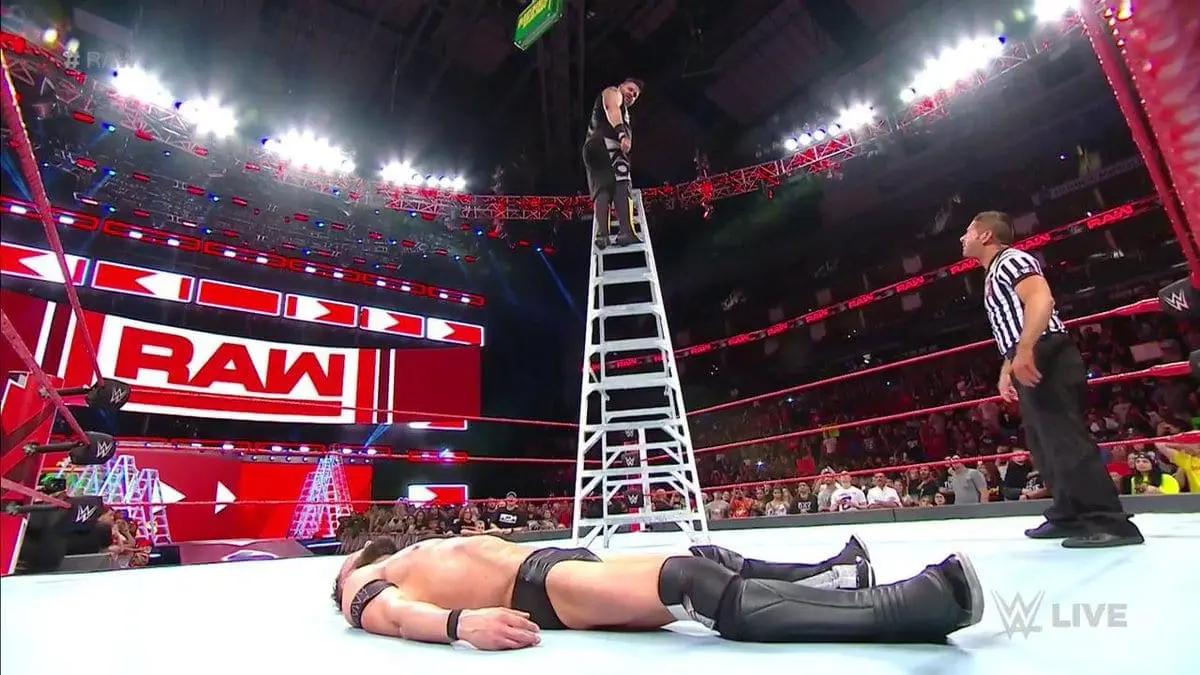 Owens climbed up a ladder and prepared for a splash on Balor but he looked scared of heights and went down a couple rungs. Then he went down a few more but this gave Finn Balor time to jump up and make his comeback.