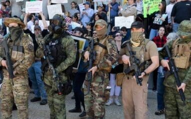According to Wikipedia, the Three Percenters are an “American and Canadian far-right militia movement and paramilitary group. The group advocates gun ownership rights and resistance to the U.S. federal government’s involvement in local affairs.” Garrett Bischoff currently has 5 shirts available on BelowTheCollar, and they are all of the same theme.