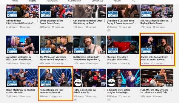 You can check out the graphic below to see a screenshot of WWE’s current YouTube page. We have highlighted Roman’s two segments.