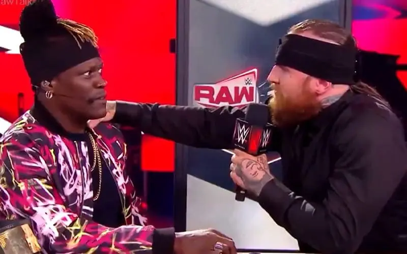 WWE RAW isn’t the end of the company’s Monday night programming. They also have RAW Talk following the show. Charly Caruso and R-Truth host that red brand wrap up show, and this week Aleister Black didn’t have a very good time.