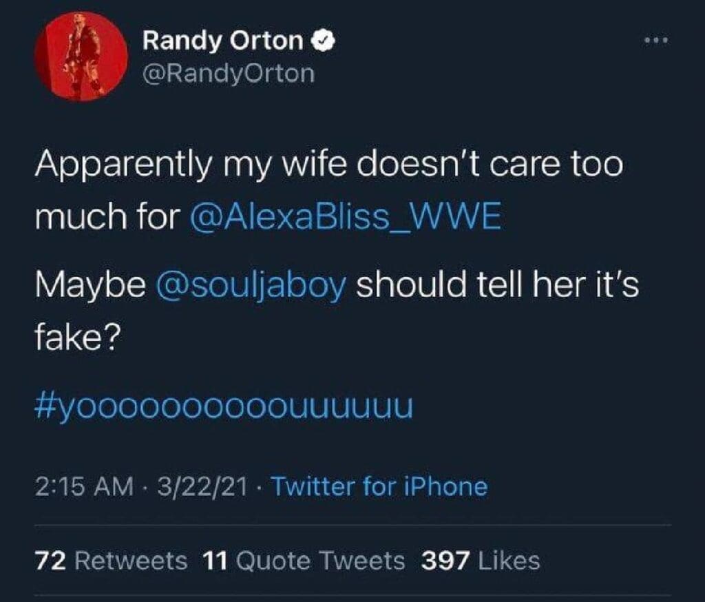 Orton later deleted that tweet, but not before we could get a screenshot of it. He could have nixed the tweet because he called wrestling “fake,” but odds are it was due to another reason.