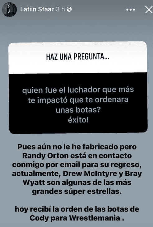 “I haven’t made them yet but Randy Orton contacted me via email for his return. Currently, Drew McIntyre and Bray Wyatt are some of the biggest superstars. Today I received an order for boots for Cody for Wrestlemania.”