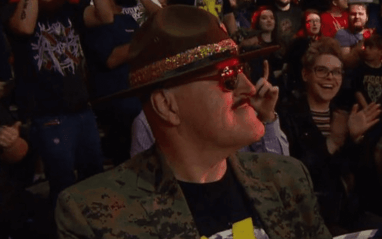 WWE fans were probably excited and somewhat surprised to see Sgt Slaughter appear on NXT this week. He was shown sitting in the crowd and he smiled while flashing his NXT t-shirt.