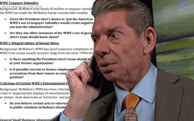 McMahon’s continued support of Donald Trump was also highlighted in these documents to show that she would be a loyal fit for the administration. They also dove much deeper into all of the allegations against WWE and the McMahon family in this vetting document.