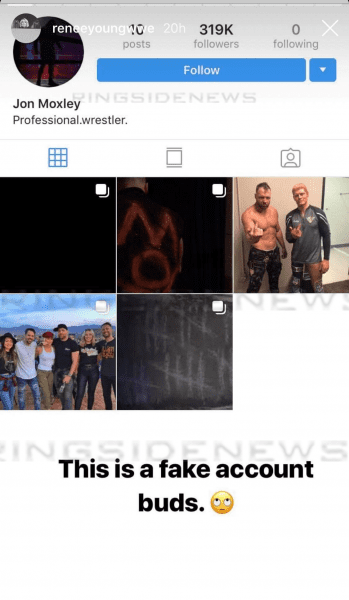 “This is a fake account buds,” Renee added as a caption. It looks like this could be a good follow if you’re into Moxley, but whoever runs this account might want to announce that it is a fan account because it could be easily mistaken.