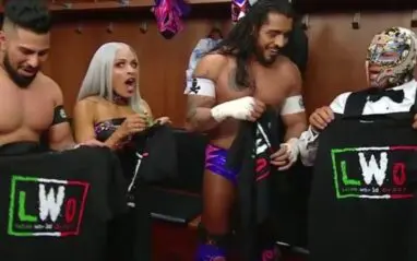 Rey said they are going to do things in style. He then handed Santos, Zelina Vega, Joaquin Wilde, and Cruz Del Toro a couple of t-shirts that were revealed to be Latino World Order merch.