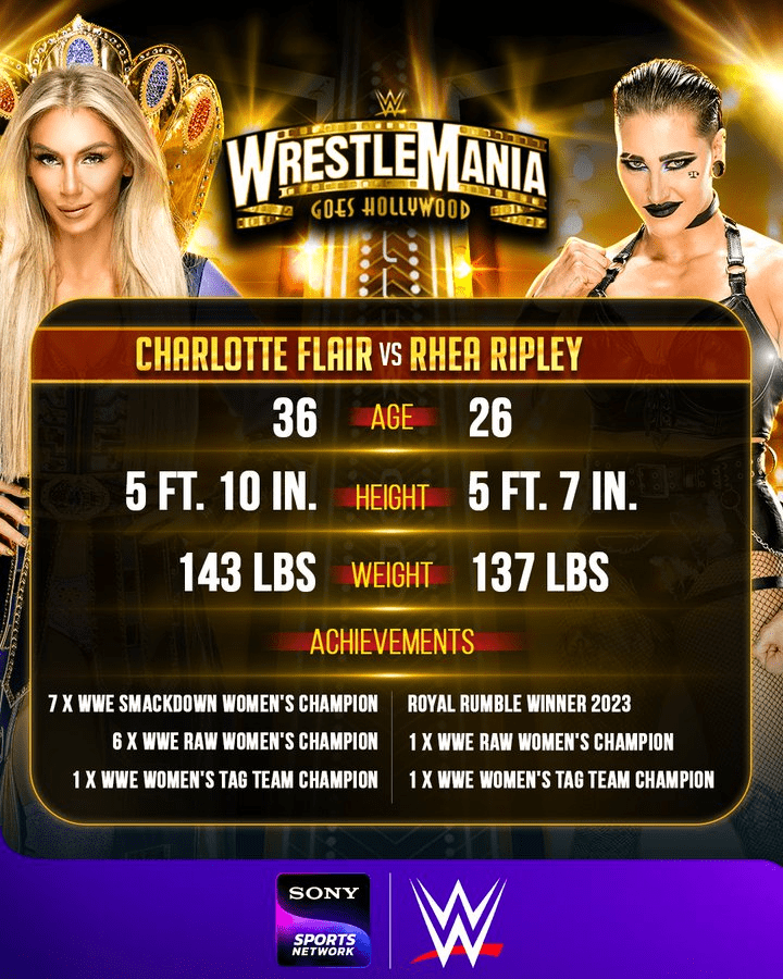 Rhea Ripley saw a Sony Sports Network tweet out a graphic of her WrestleMania match. That graphic included some stats about the match, including a note that Ripley is 5ft 7in, and 137 pounds.