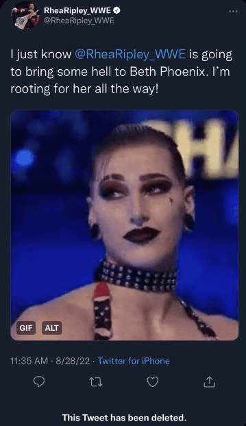 It’s unclear what Rhea Ripley meant by this tweet, but referring to herself in the third person was very interesting. Perhaps we just busted her using a burner sock puppet account, but The Nightmare was quick to delete the tweet and then never bring it up again.