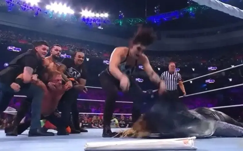 A surprising moment took place during the match when Beth Phoenix came out of nowhere to aid her husband in the fight against The Judgement Day. The numbers game was too much for The Rated R Superstar, because he said “I Quit” after Rhea Ripley threatened to smash a steel chair in his wife’s head. Then The Nightmare smashed the Glamazon’s head anyway.