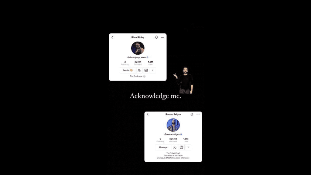 Recently, Rhea Ripley brought up the fact on her Instagram story that she has more TikTok fans than Roman Reigns. She then made it crystal plain that she expects Reigns to acknowledge her.