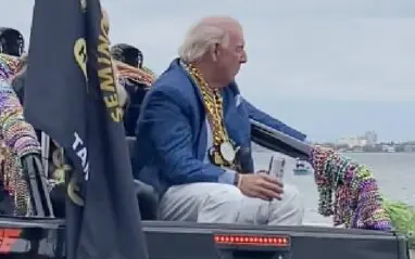 In a video that surfaced online from the parade, Ric Flair can be seen having a good time sitting in the back of a pickup truck.