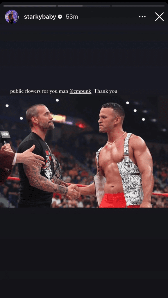 Ricky Starks, who shared a locker room with CM Punk, noticed that the Second City Savior returned to WWE. He sent out an Instagram story with a photo of them in the ring together, and a caption that gave public flowers to Punk.