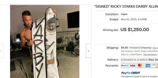 We previously reported that Starks was selling a custom Darby Allin body bag, the same one he used on AEW programming for weeks while feuding with Allin. The auction got to $1,250, but then the winning bidder didn’t pay up.