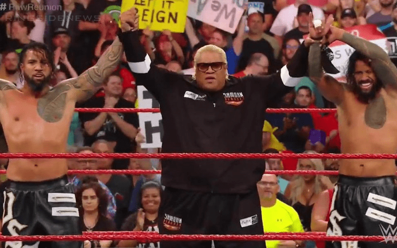 The Raw Reunion featured a few cool moments including The Usos getting to share the ring with their WWE Hall Of Famer father Rikishi. However, the former Too Cool member was greatly limited in the ring.