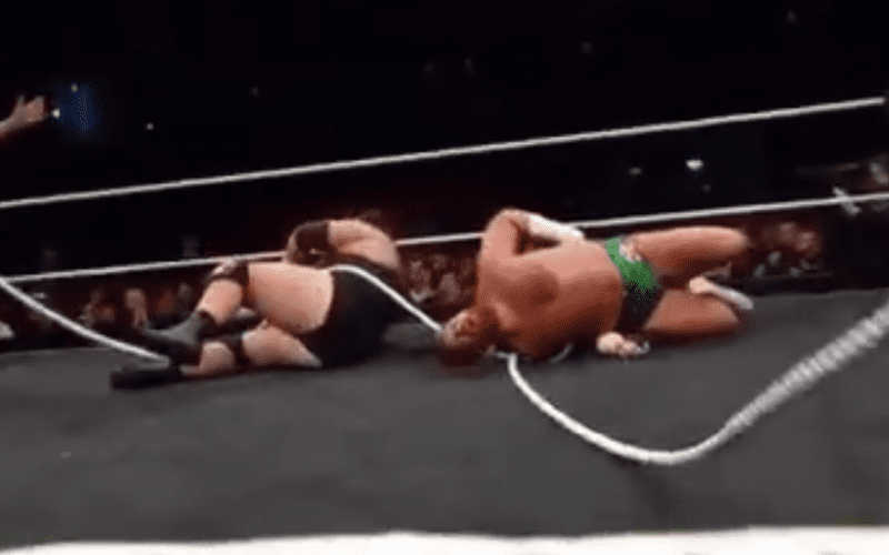 This last man standing match had a lot of action outside the ring. This worked out for the best because the two massive men busted the ring during their match. The top ropes snapped and it stopped them from really working in the ring. Running the ropes was certainly not happening.