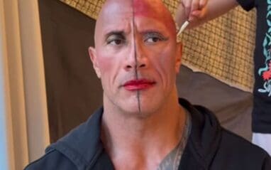By the look of the video, each daughter took her creative freedom seriously. The Rock’s face was split right down the middle with clashing makeup styles—and they didn’t stop there.