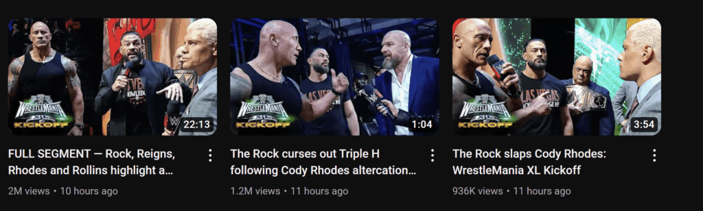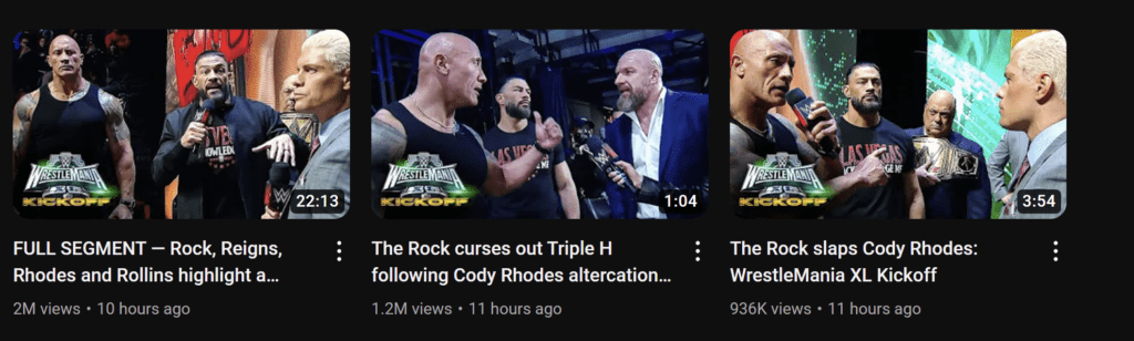 WWE’s press event in Las Vegas to kick off WrestleMania 40 had a lot of hype behind it, as fans just wanted an answer to whether The Rock would main event the Show of Shows this year. It appears the anticipation helped them greatly, as quite a few of The Rock’s segments at the presser drew insane YouTube numbers.