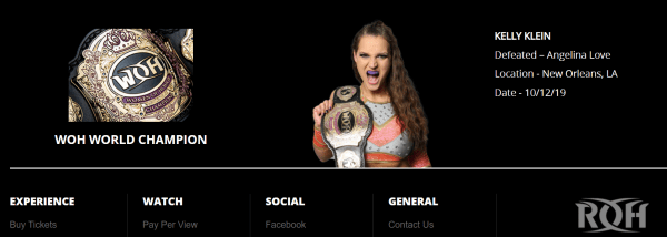 Interestingly enough, ROH has not removed Kelly Klein from their roster page. She is currently listed as their Woman Of Honor Champion as well.