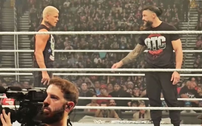 Following the conclusion of Friday Night SmackDown, Roman Reigns and Cody Rhodes were seen exchanging words in the ring while the rest of The Bloodline made their way to the back.