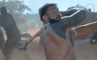 "We are rehearsing a scene, and it's a big scene where both of us are supposed to take our clubs over our heads and throw. They say, 'Okay guys there are a lot of people around -- no need to throw the club.' Got it [Roman]? Got it brotha, no need to throw the club."