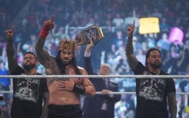 As seen on this week’s episode of Friday Night Smackdown, Reigns squared off against Xavier Woods in a singles match. The match ended in DQ after The Usos attacked Woods. After that they all beat down on Woods and Roman Reigns stole his crown and wore it.