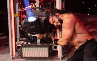 Kevin Owens handcuffed Reigns to the bottom rung of a lighting rig and The Tribal Chief couldn’t stand up. Paul Heyman was supposed to run out and let him loose with a handcuff key, but there was a big problem.