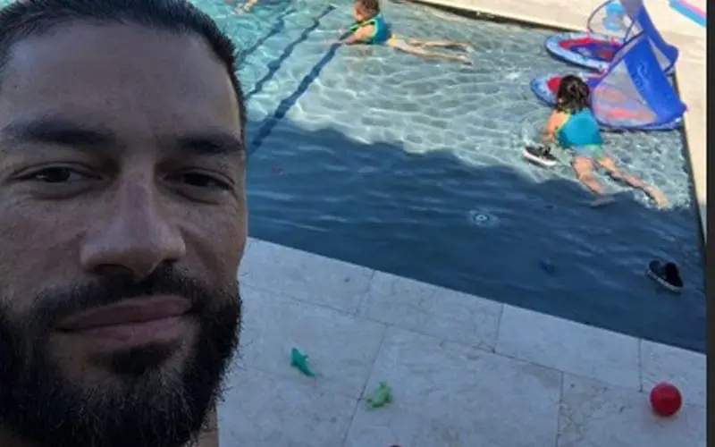 Reigns recently posted an update for fans to his Instagram story. He didn’t say anything, but the look on his face was enough to know that he’s happy. It appears that Reigns was sharing a glimpse of his day at the pool with his family.
