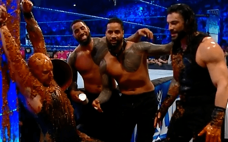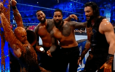 The Usos and Roman Reigns faced King Corbin, Dolph Ziggler, and Robert Roode in a six man tag team match this week on Friday Night SmackDown. During the first segment they had a conversation and decided to add a special stipulation: Loser eats dog food.