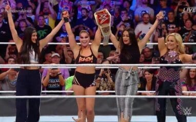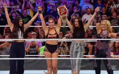 The segment ended with The Bella Twins joining Nattie and Rousey as they celebrated in the ring. Then Rousey and Nattie left very happy about what had just gone down.